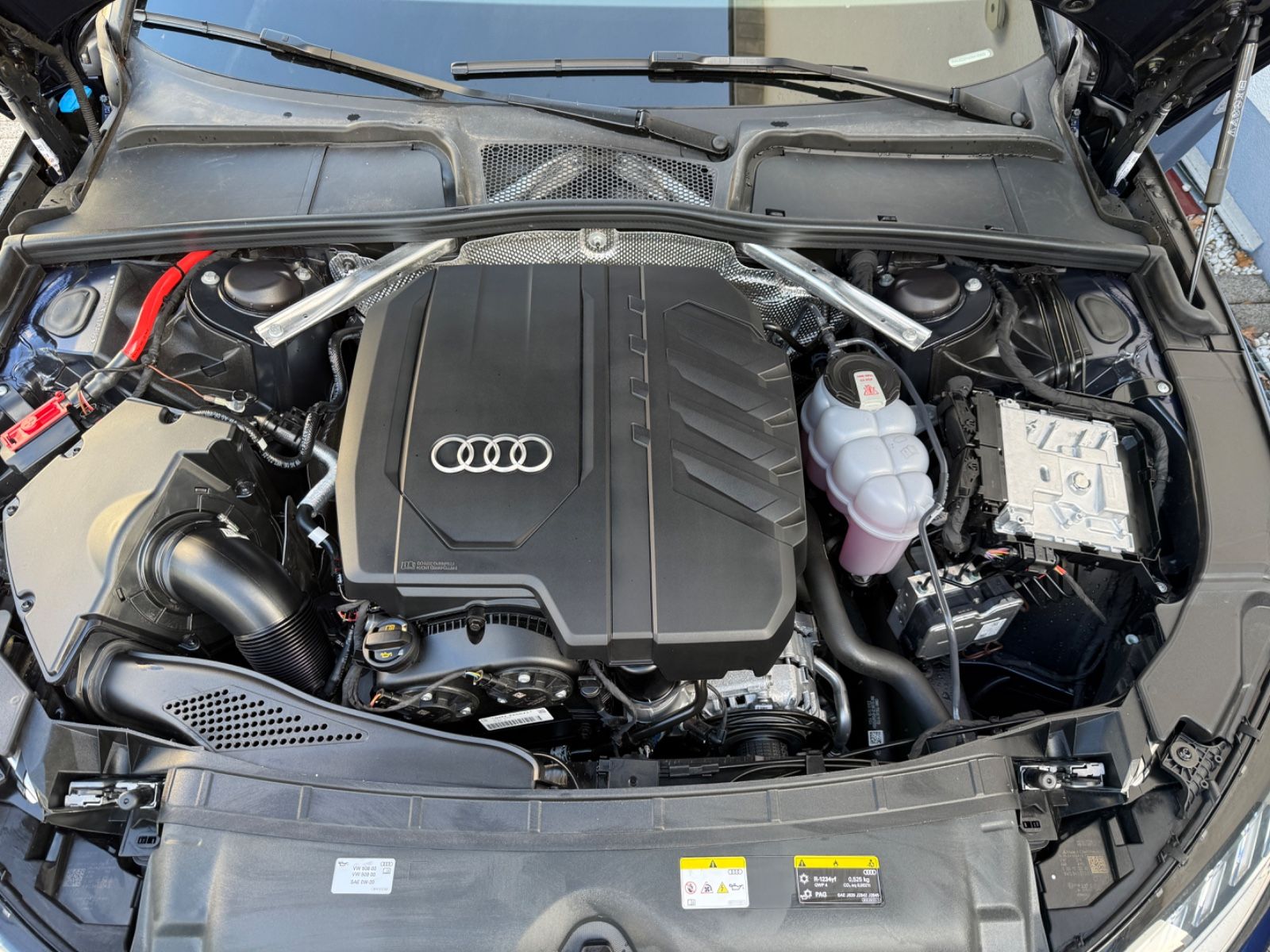 und Assistance-System), , Audi Drive Select, Außenspiegel Wagenfarbe, , Blinkleuchten LED in Außenspiegel integriert, , Dachkantenspoiler, , Dachreling schwarz, , Einparkhilfe vorn und hinten, akustisch und optisch mit selektiver Anzeige (APS Plus), , Einstiegsleisten mit Aluminiumeinlage und Schriftzug, beleuchtet,, Fahrassistenz-System: City-Notbremsfunktion (Audi pre sense City), , Fahrassistenz-System: Spurverlassenswarnung, , Fahrassistenz-System: Verkehrszeichenerkennung, , Fahrer-Informations-System (FIS) mit Farbdisplay, , Fensterzierleisten schwarz, , Frontscheibe Akustikglas, F, ußmatten Velours, , Geschwindigkeits-Begrenzeranlage, , Heckdiffusor, , Isofix-Aufnahmen für Kindersitz, , Karosserie: 4-türig, , Knieairbag Fahrer-/Beifahrerseite,, Kopf-Airbag-System (Sideguard), , Kraftstofftank: 58 Ltr., , Mild-Hybrid 195 kW (Motor 2,0 Ltr.