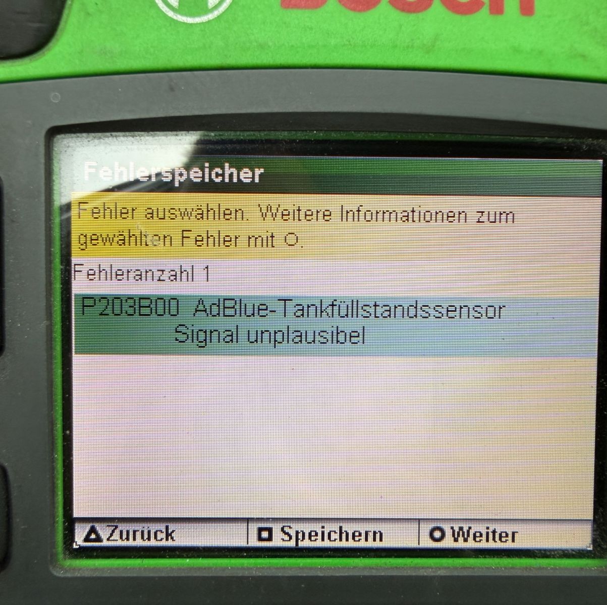 Motorkontrolleuchte leuchtet: Fehler Füllstandsanzeige Adblue, siehe Bild.